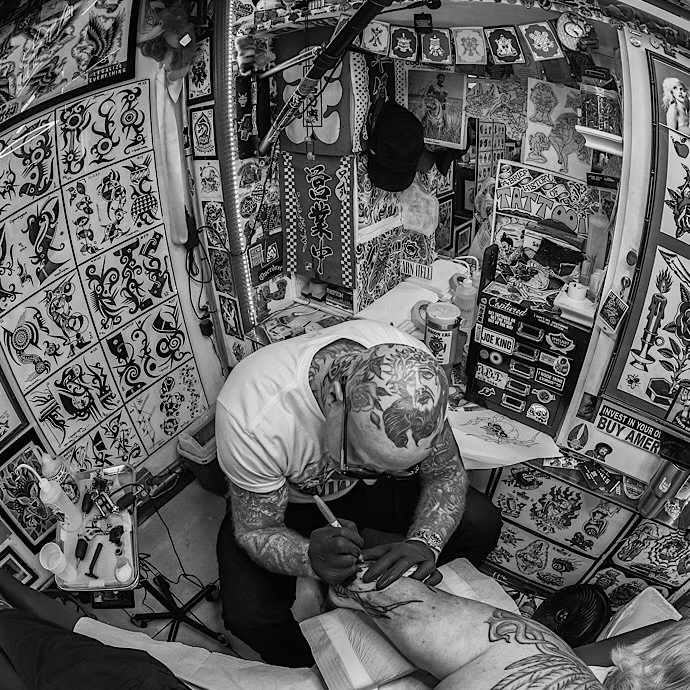 Jacob has been tattooing for the last 10 years, most of those here at Elm Street Tattoo. He prefers to focus on high contrast, smooth Black & Grey traditional tattoos.